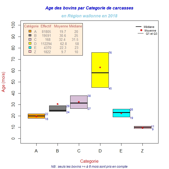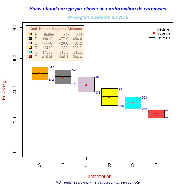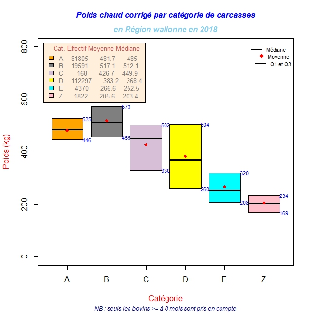 Ages des bovins par Catégorie / Poids chaud corrigé par Catégorie / Poids chaud corrigé par Conformation