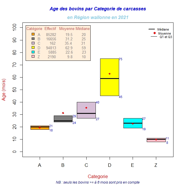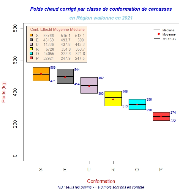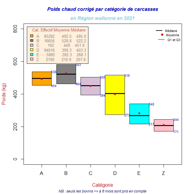 Ages des bovins par Catégorie / Poids chaud corrigé par Catégorie / Poids chaud corrigé par Conformation