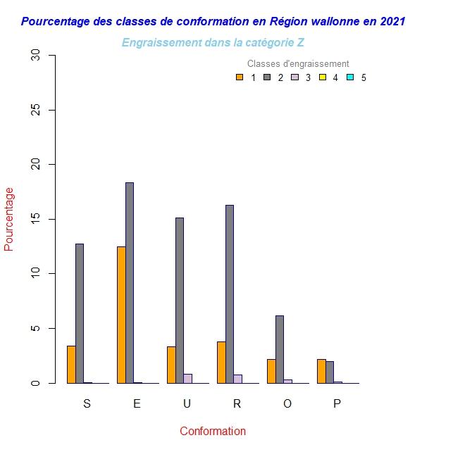 Pourcentage des classes de Conformation / Engraissement dans les Catégoriess D, E, Z