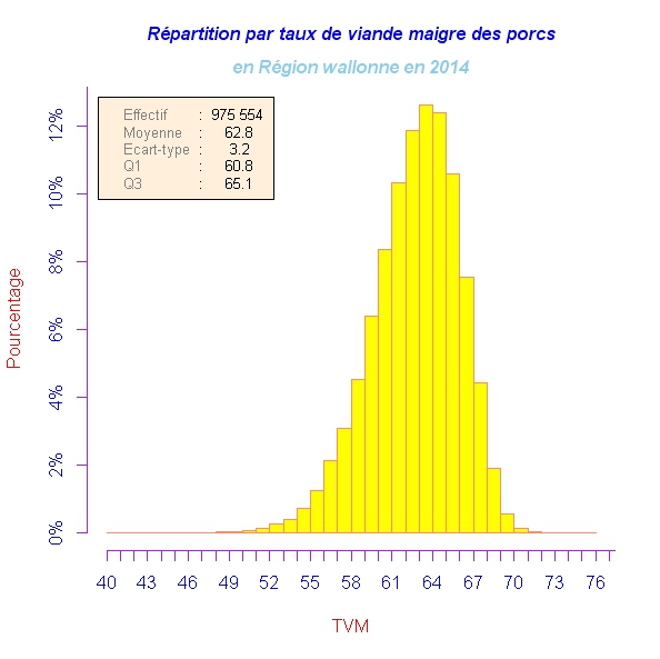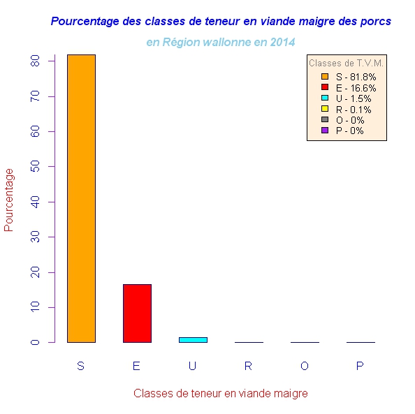 Pourcentage des classes de teneur en viande maigre (T.V.M.)