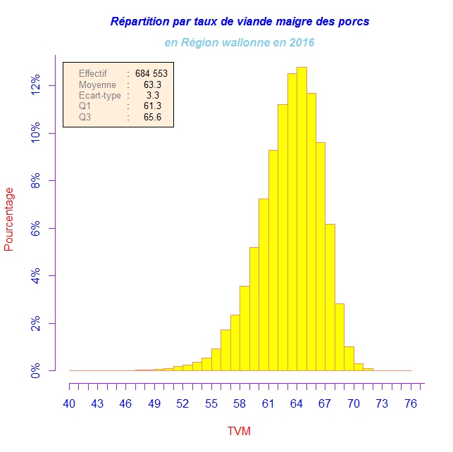 Pourcentage des classes de teneur en viande maigre (T.V.M.)