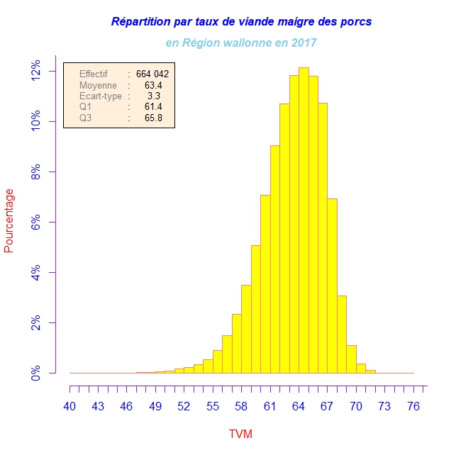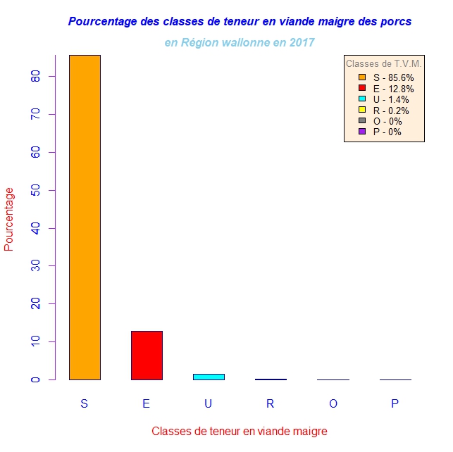 Pourcentage des classes de teneur en viande maigre (T.V.M.)