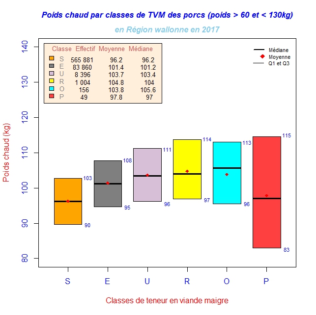 Répartition par poids chaud / par teneur en viande maigre (T.V.M.)