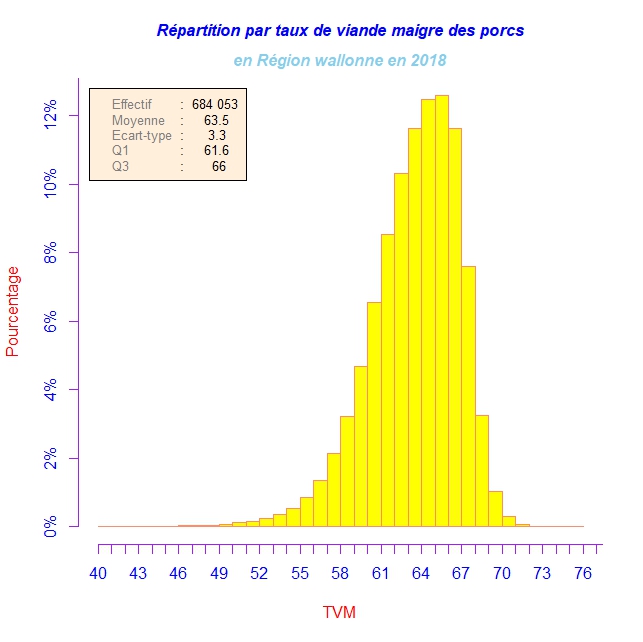 Pourcentage des classes de teneur en viande maigre (T.V.M.)