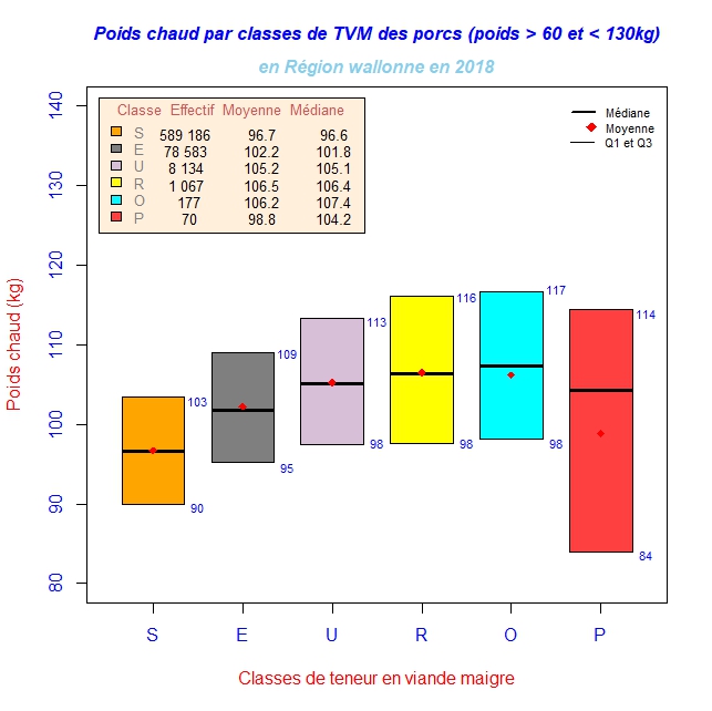 Répartition par poids chaud / par teneur en viande maigre (T.V.M.)