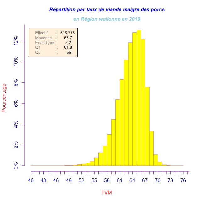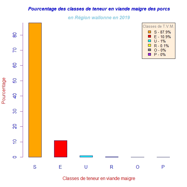 Pourcentage des classes de teneur en viande maigre (T.V.M.)