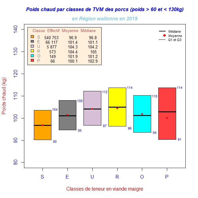Répartition par poids chaud / par teneur en viande maigre (T.V.M.)